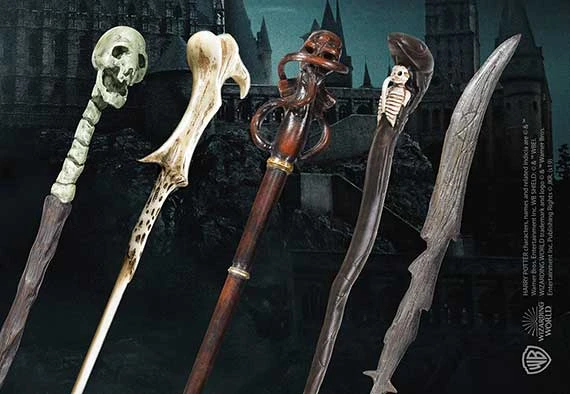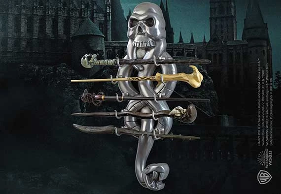 The Dark Mark wall display and the wands of Lord Voldemort, and four Death Eaters.
