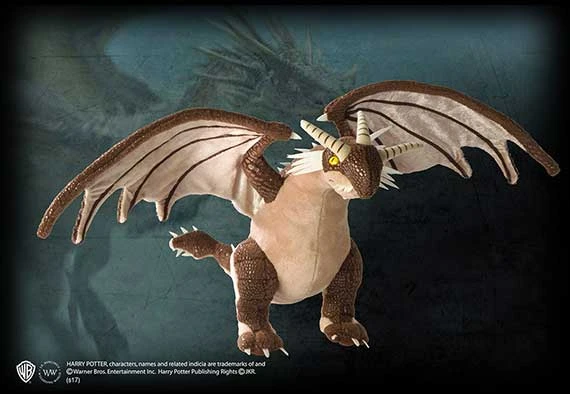 The Hungarian Horntail is considered to be one of the most dangerous dragon breeds. It has black scales, yellow eyes, with vertical, cat-like pupils and is lizard-like in appearance. It has bronze horns and similarly coloured spikes that protrude from its long tail which it will gladly deploy in combat. The dragon’s roar is a yowling, screeching scream, and its flame can reach to about fifty feet and exceedingly high temperatures.