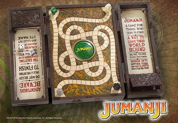 A miniature prop replica of the board from the Jumanji movie. This prop replica is not a board game.