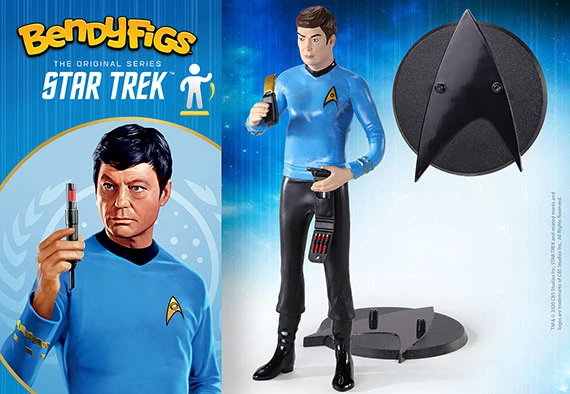 Each fully posable figure stands approximately 7.5 inches in height and each comes with an iconic Federation delta logo, branded stand and appropriate accessories. Uhura with a communicator and earpiece, Dr McCoy with a communicator and medical kit, Spock with science pouch and communicator and Kirk with a phaser and communicator.