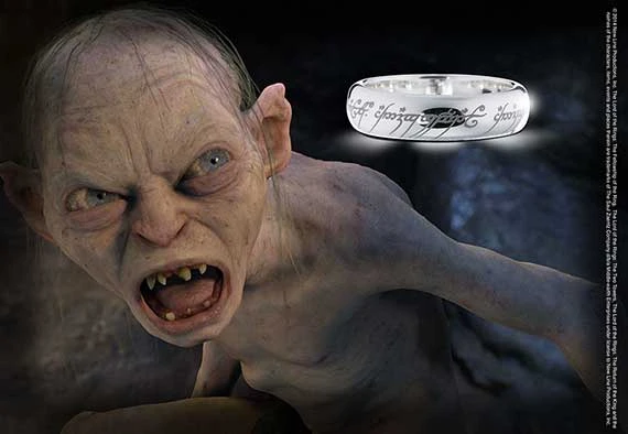 Solid sterling silver with laser etching of the elvish script on the outside of the ring.It comes complete with a rich wooden collector’s box.