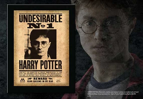 A replica of the Harry Potter wanted poster mounted on wood. Can be hung on wall or displayed on table.